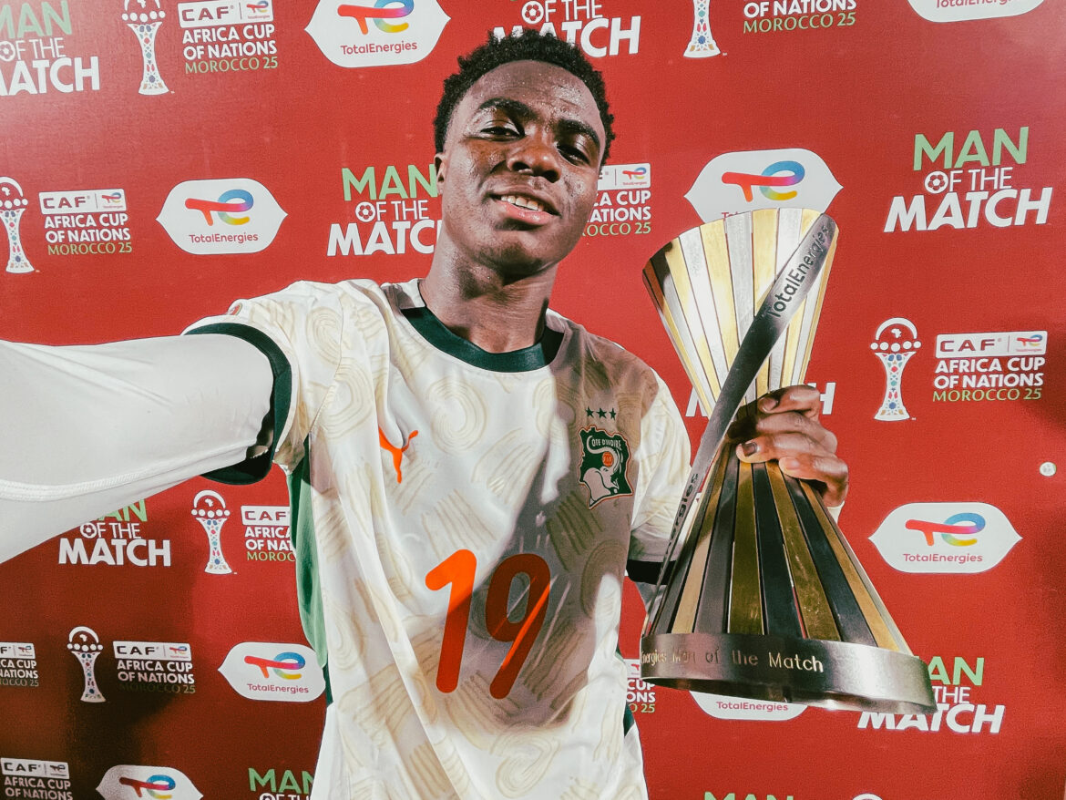 Christ Ravynel Inao Oulaï, just 19, is making headlines across Africa after being named Man of the Match in Côte d’Ivoire’s thrilling 3–2 comeback win over Gabon at the 2025 Africa Cup of Nations. His commanding presence in midfield, clever passes, and tireless work rate were central to the Elephants’ turnaround, earning him widespread praise and cementing his status as one of the tournament’s breakout stars.