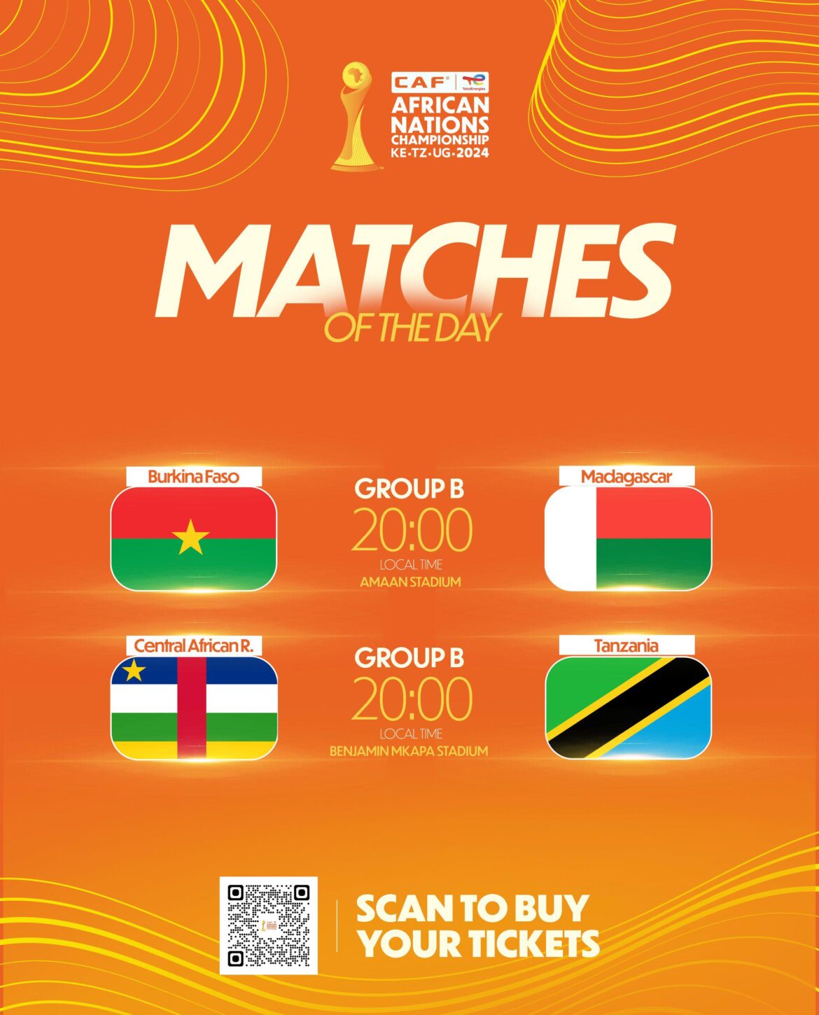 The TotalEnergies African Nations Championship (CHAN) 2024 continues to thrill fans with its competitive matches: two exciting encounters are scheduled for August 16, in Group B, featuring Central African Republic vs Tanzania and Burkina Faso vs Madagascar.
