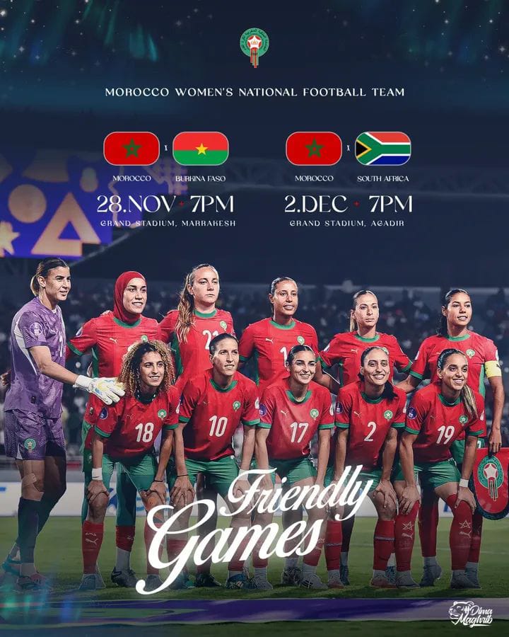 They face Burkina Faso on 28 November in Marrakech, before hosting African champions South Africa on 2 December in Agadir, a perfect double test against physical and tactical opponents.