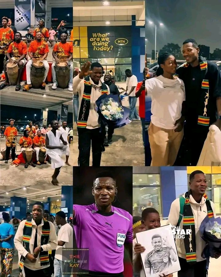 Family members, close friends, and well-wishers gathered to celebrate the accomplished referee, as traditional Ga dancers and drummers filled the airport with vibrant rhythms and cultural displays. The festive atmosphere transformed the arrival hall into a moment of national celebration, highlighting Ghana’s rich heritage and collective joy.