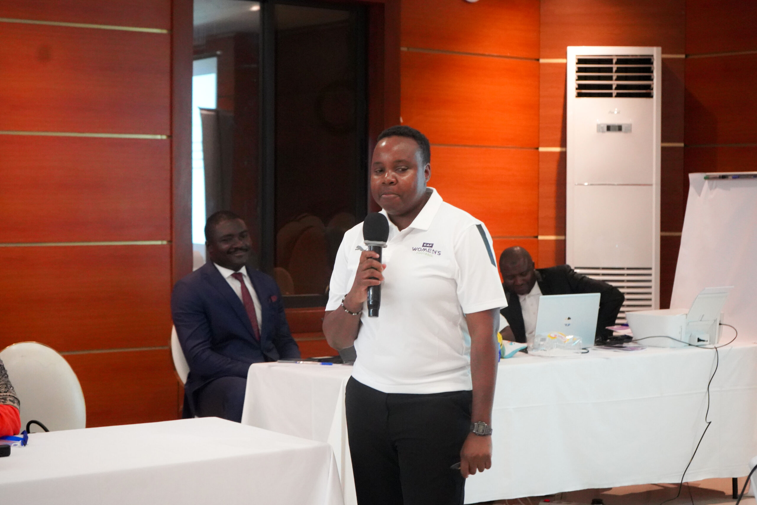 La journée d’ouverture a débuté par un mot de bienvenue prononcé par le Directeur Exécutif par intérim de l’UNIFFAC, *Rémy Marthial N’nang*, suivi de sessions animées par des expertes, notamment *Meskerem Tadesse Goshime* Cheffe du Football Féminin à la CAF, accompagnée des instructrices CAF Sibanda Thubaelihe Bridgette et Armel Azihar Slyvania.